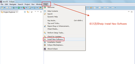 打开eclipse,在eclipse工作界面,点击Help,选择install new software…,进入Install页面。