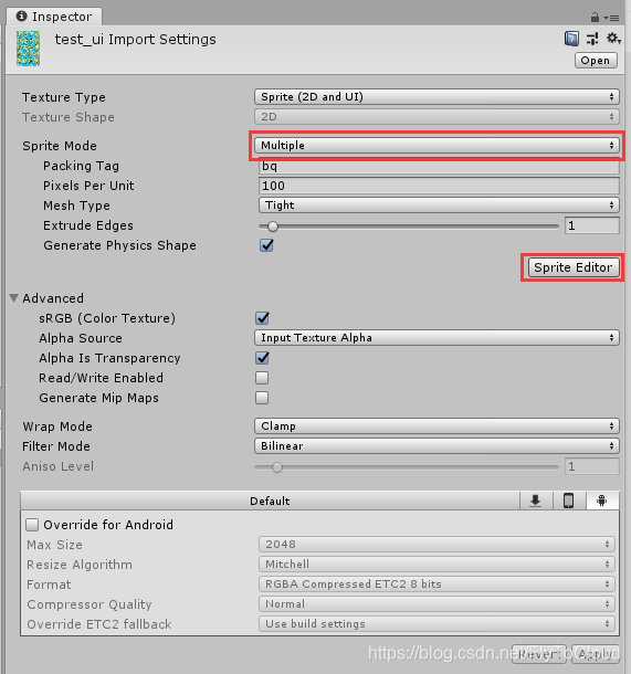 1.导入需要用于制作表情的图片到unity中,将Sprite Mode设置为Multiple。