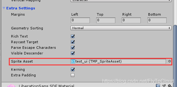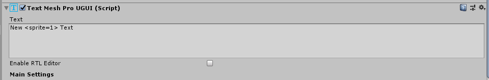 - Sprite Asset:关联的表情资源文件(如果没有设置,在使用图文混编的时候会自动启用系统默认的表情资源)