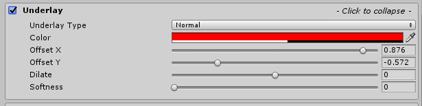 - 【Color】阴影颜色,【Offset】阴影的偏移量,【Dilate】影响阴影大小,【Softness】柔和程度。