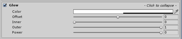 - 【Color】外发光颜色,【Offset】内外交界处的偏移为整数则沿法线向外偏移,【Inner】外发光向内部扩散的距离,【Outer】外发光向外部扩散的距离,【Power】强度。