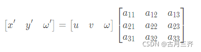 可以通过如下矩阵将平面a中的点u,v映射为平面b中的x,y