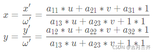 由于a11~a32一共有8个系数,所以我们需要8个方程组(4组坐标)来求解对应的系数。
