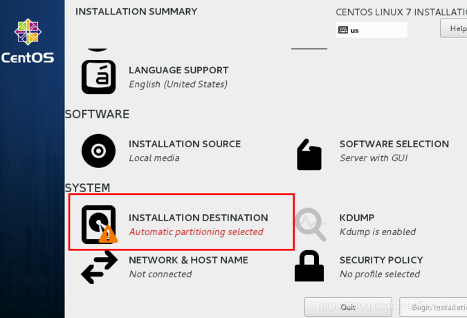 选择第一项,安装直接CentOS 7,回车,进入下面的界面