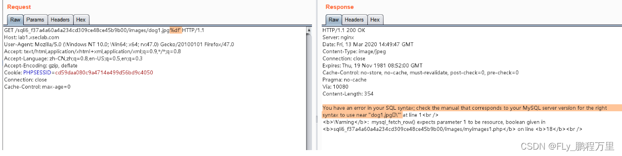 图片参数后加——%df’,发现触发报错信息,确定存在注入