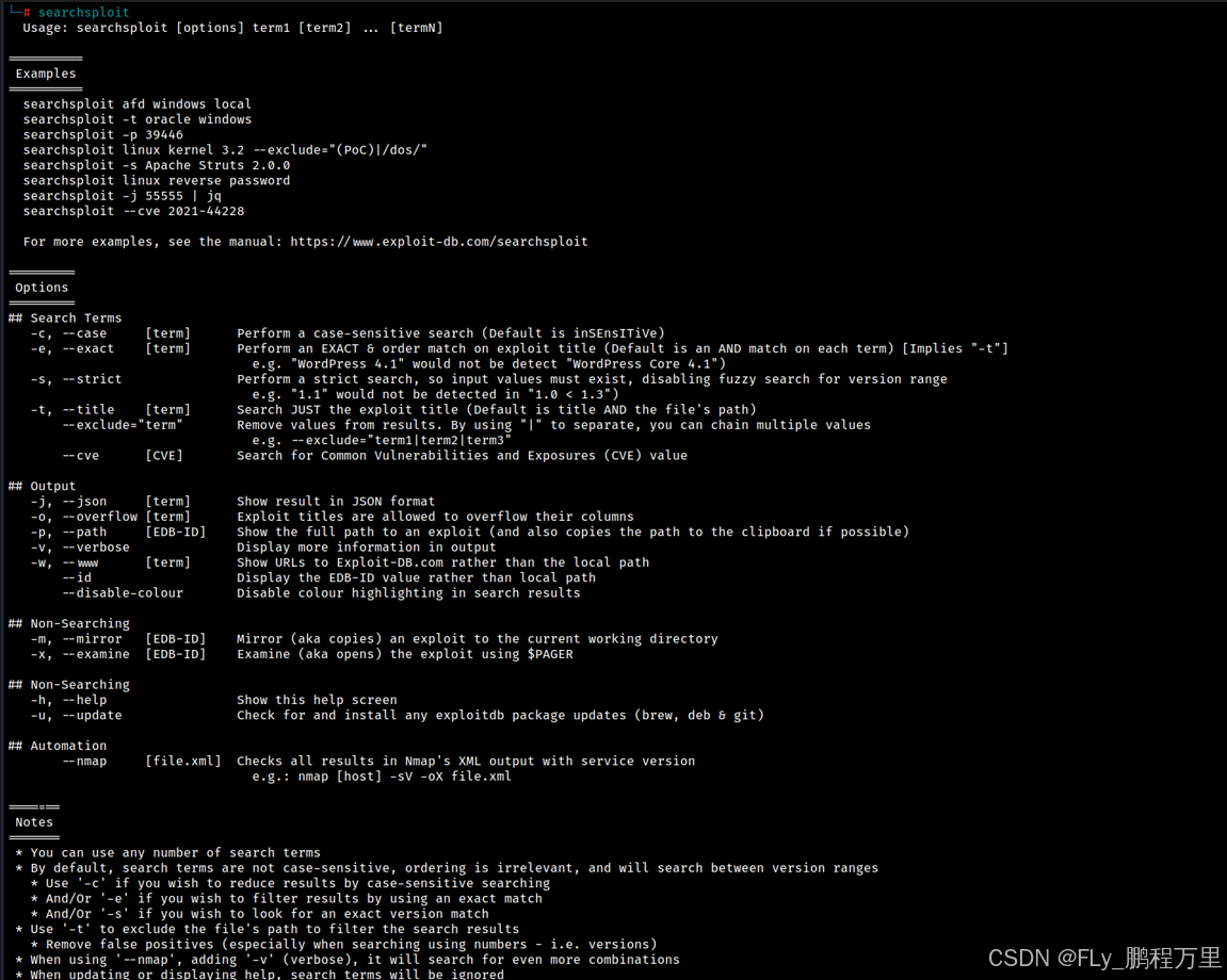 Usage: searchsploit [options] term1 [term2] ... [termN]