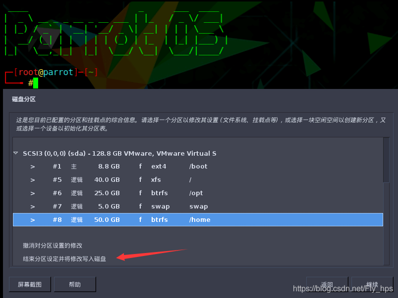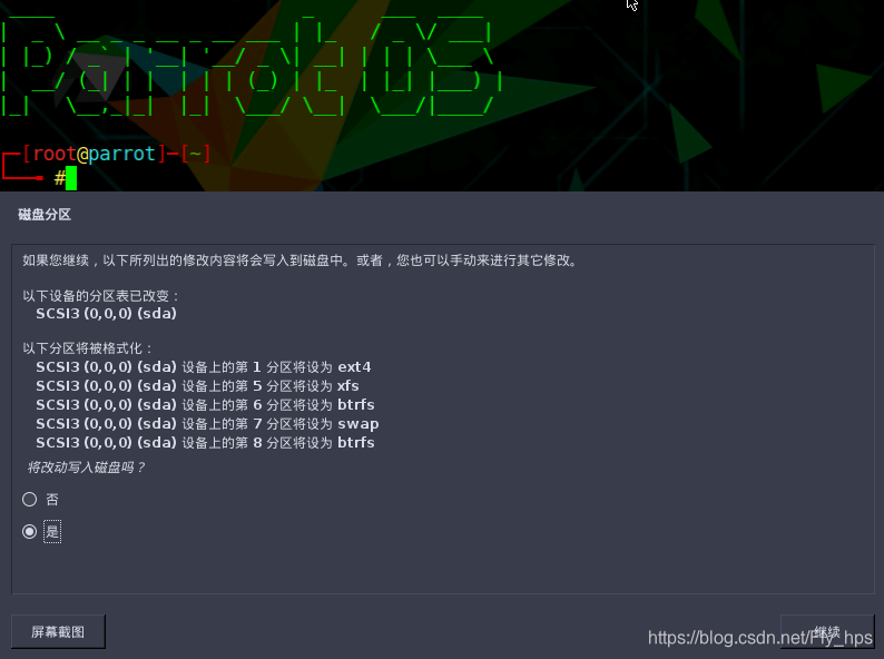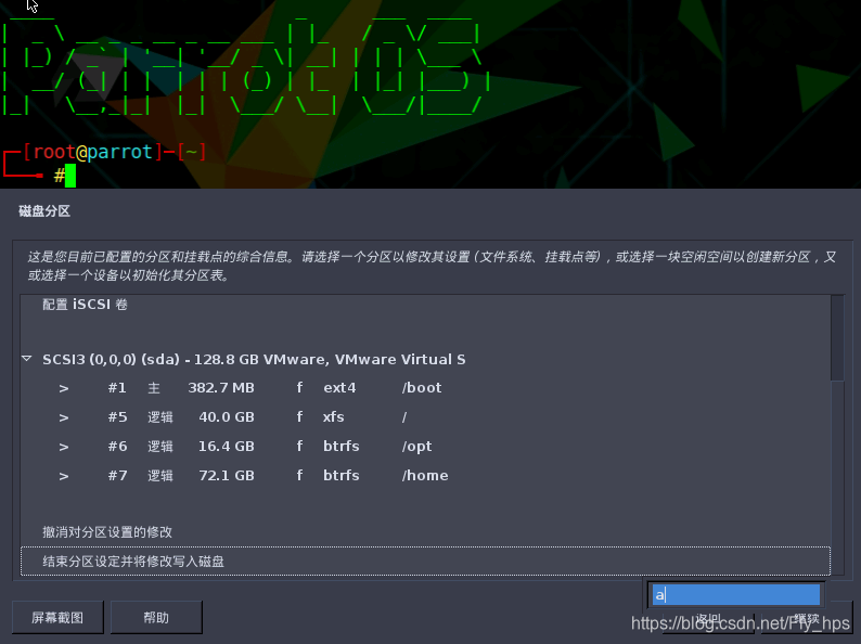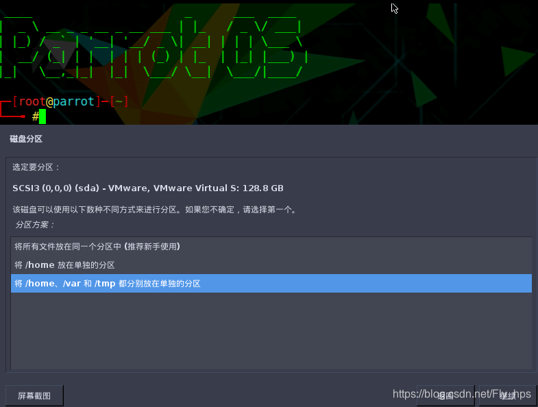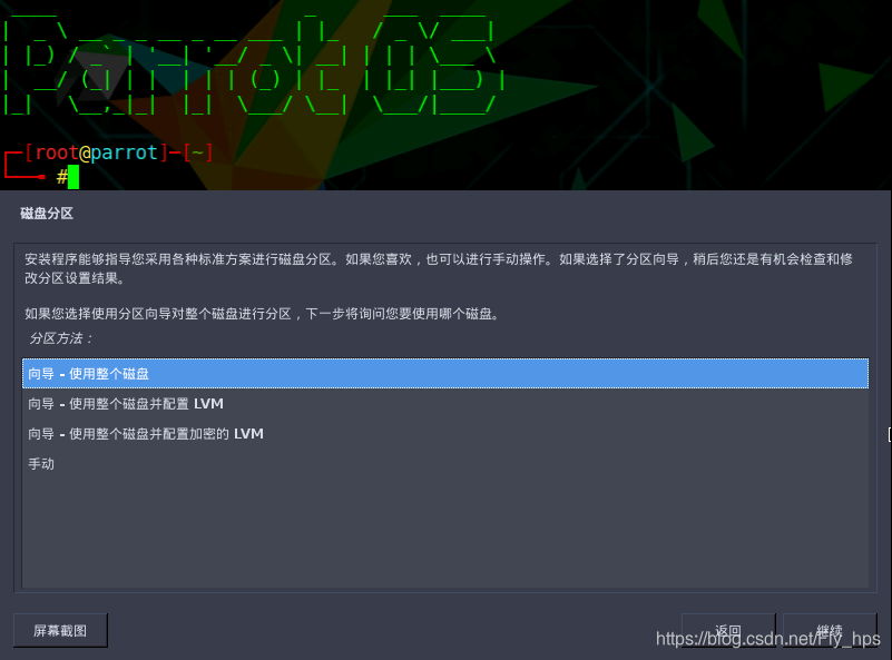 对磁盘进行分区,这里我选择第3个,如果不需要更改分区设置的可以直接选择第一个快速安装: