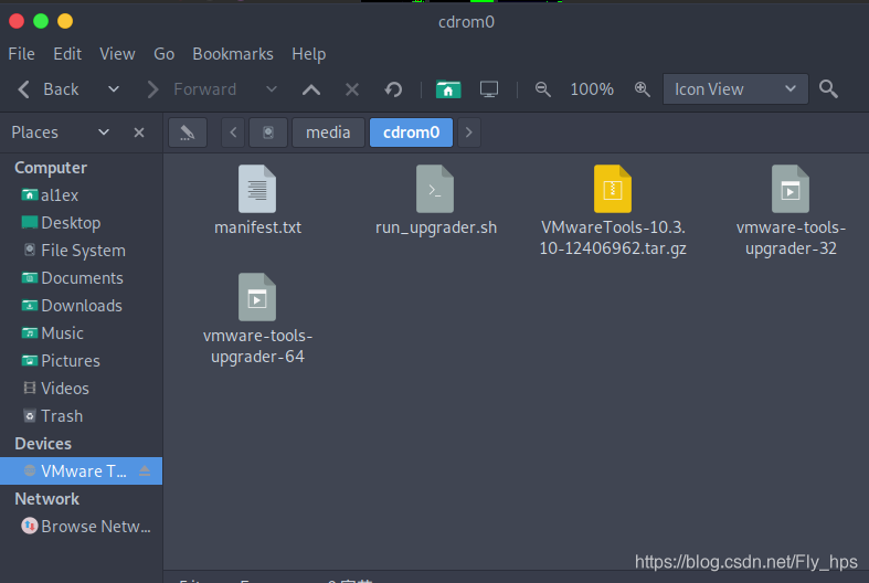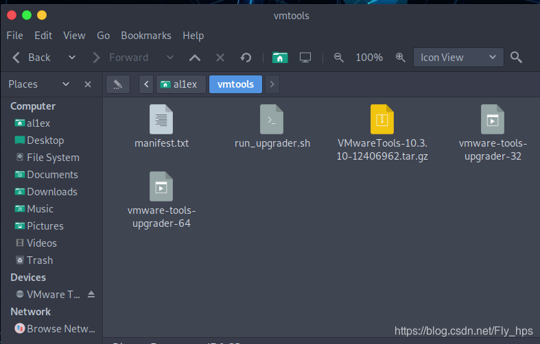 之后在个人文件夹中新建文件夹vmtools,之后拷贝上面文件到该文件夹下:
