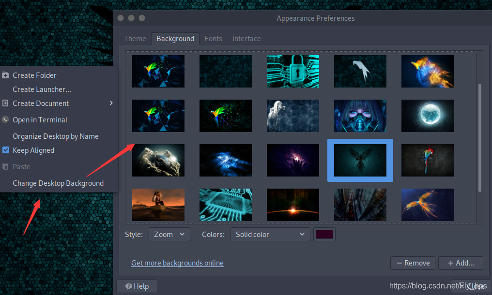 鼠标右键选择“change Desktop Background”,之后选择桌面即可: