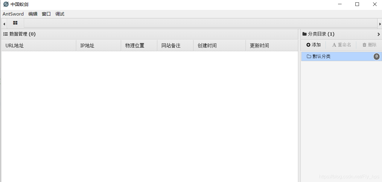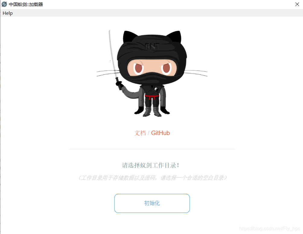之后点击初始化选项,选择一个空目录为中国蚁剑的工作目录,加载器会自动下载源代码,待初始化完成后,重新打开蚁剑加载器时即可看到蚁剑的主界面: