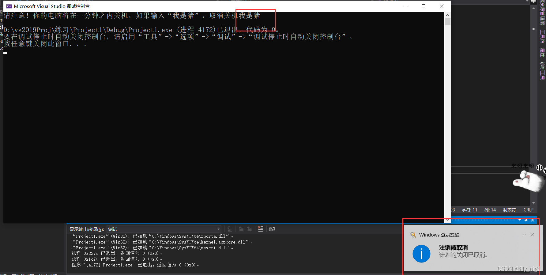 printf("请注意!你的电脑将在一分钟之内关机,如果输入“我是猪”,取消关机");