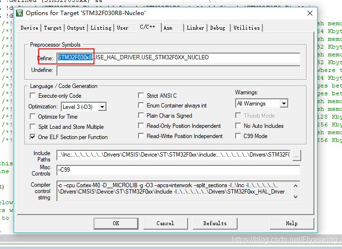 这个宏定义很关键,如果在device选项卡修改了器件,这里的宏定义不会自己修改,如果不手动修改,编译就好有警告。