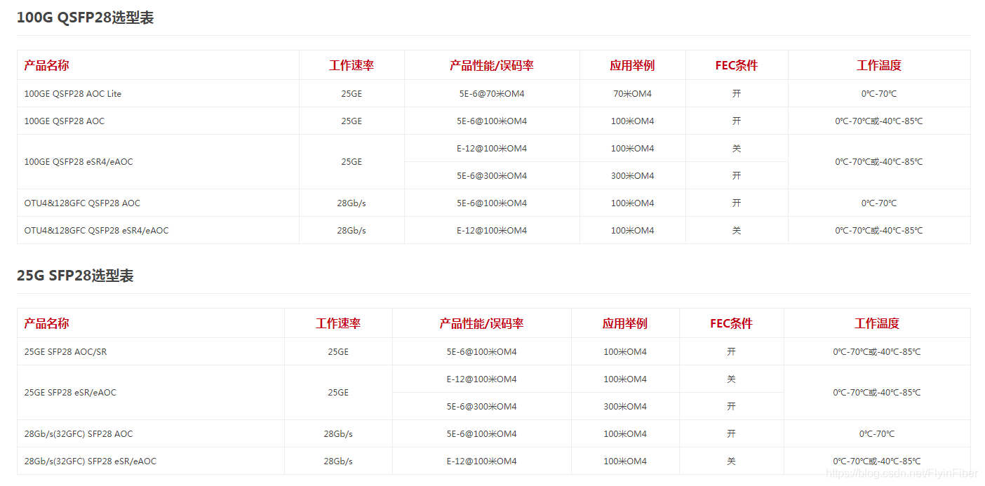 亿创飞宇在多模VCSEL 光模块和AOC 领域深耕多年,其中数据中心AOC 多模产品线业已从第一代10G/40G SR AOC 过渡到现今市场主流应用的25G/100G SR AOC。基于细分市场的目的,亿创飞宇定义并开发了一系列差异化的 AOC 产品,包括超频低成本AOC lite 版本,标准SR4 AOC 版本,支持25GE 零误码的 eSR4 AOC 版本,支持双速率的eSR4+ AOC 等,可以为客户提供最佳商用选择。亿创飞宇同时也提供25G AOC的多选择版本。