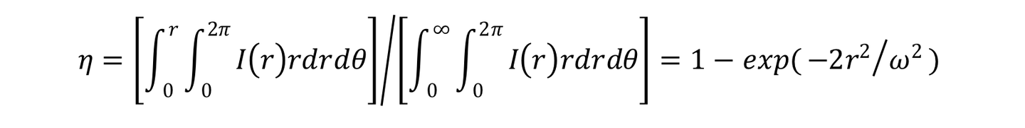 计算半径为r的圆形区域内所包含的光能量占总能量的比例𝞰,需对光强在该区域内进行积分: