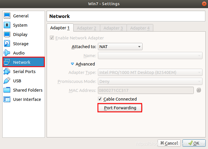 1,VirtualBox界面设置网络链接方式为NAT,并设置端口转发规则,步骤如下图.