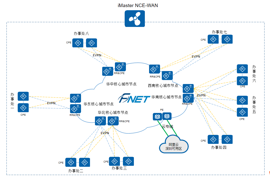 采用两条不同运营商的云专线,分别连接到客户的阿里云深圳可用区。通过双PE节点与光联骨干进行BGP互通,并利用BFD技术确保云专线中断时能够快速切换,极大提升网络的稳定性。