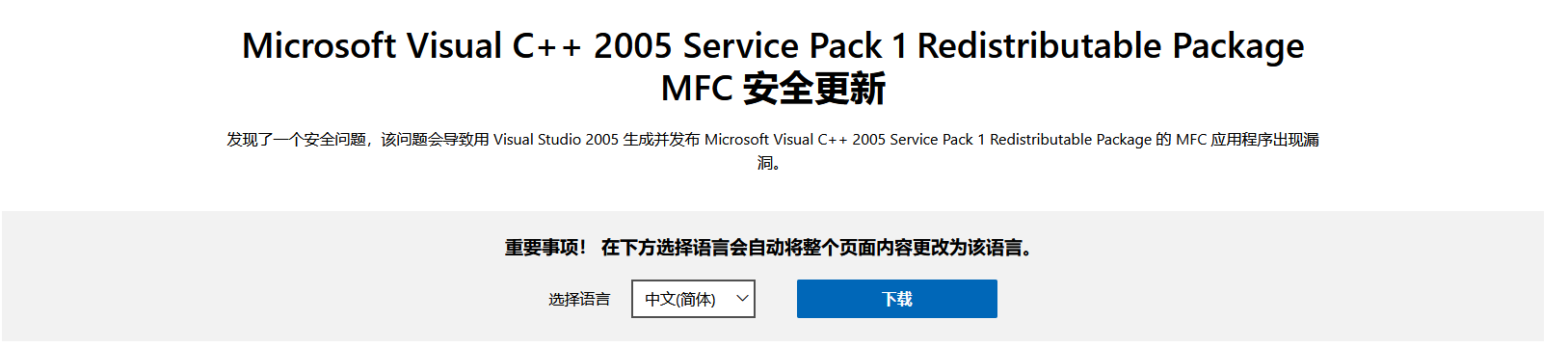 访问微软官方下载中心,搜索“Visual C++ 2005 Redistributable”。