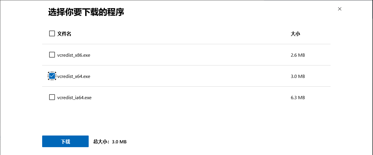 根据系统位数选择版本(x86为32位,x64为64位),下载vcredist_x86.exe或vcredist_x64.exe。