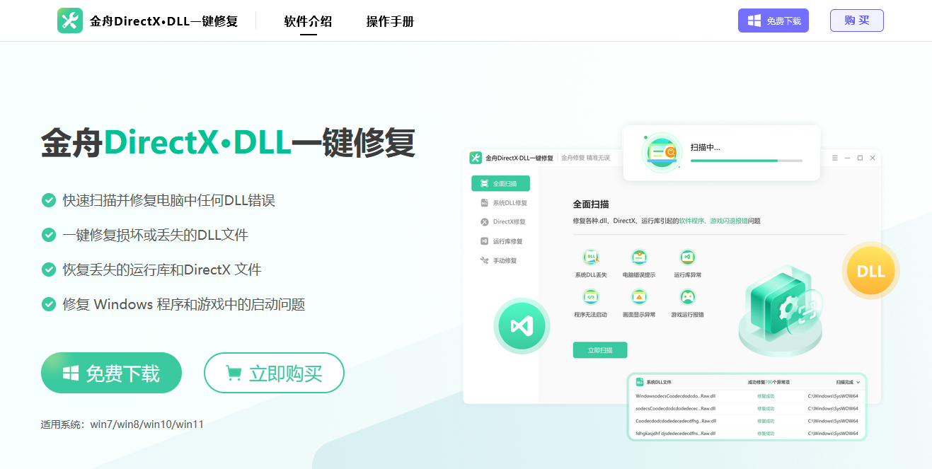 ✅一键修复:无需手动下载或注册,支持DirectX及系统级DLL修复。