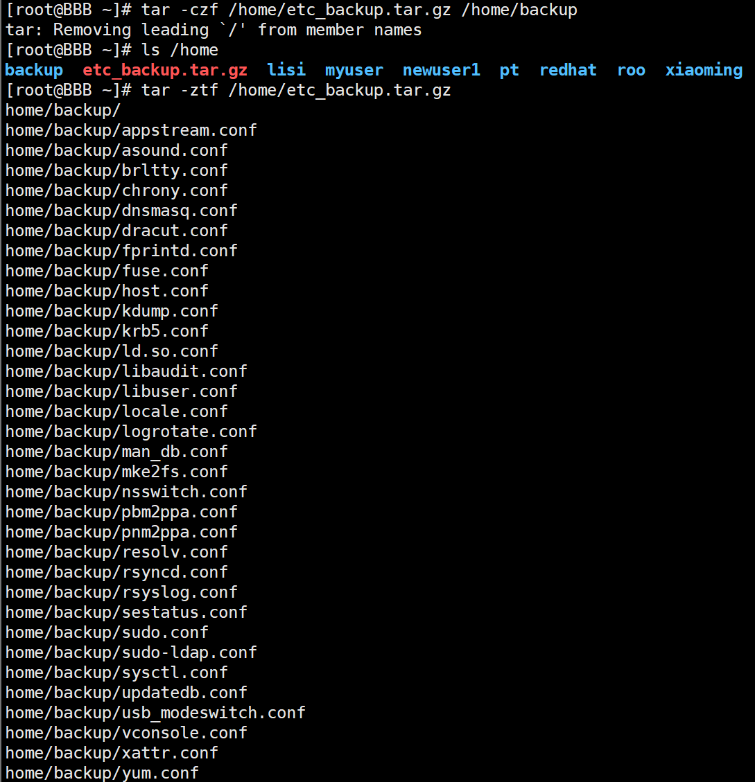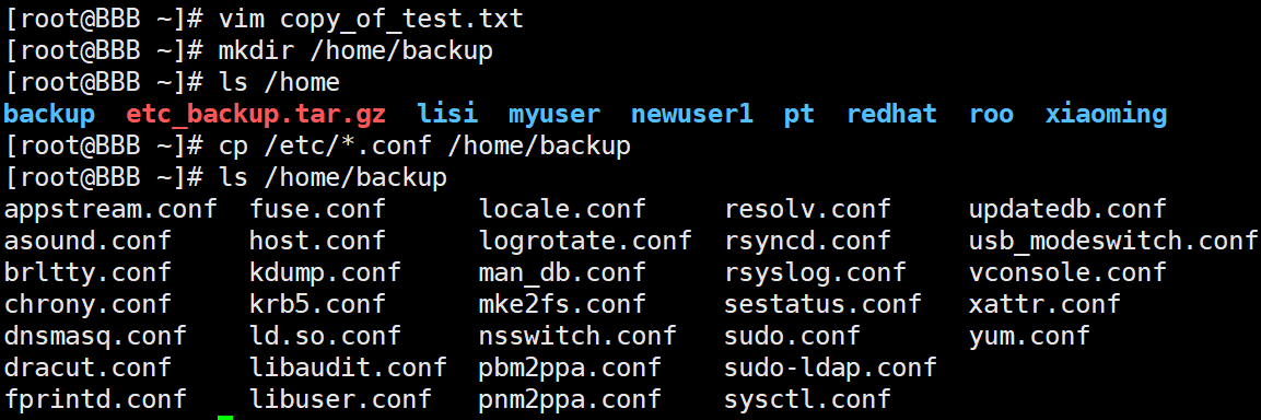 (1).在/home目录下创建一个名为backup的目录,将/etc目录下所有以.conf结尾的文件复制到backup目录中。