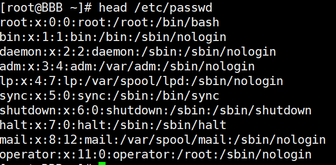(1). 使用合适的命令查看/etc/passwd文件的前 10 行内容。