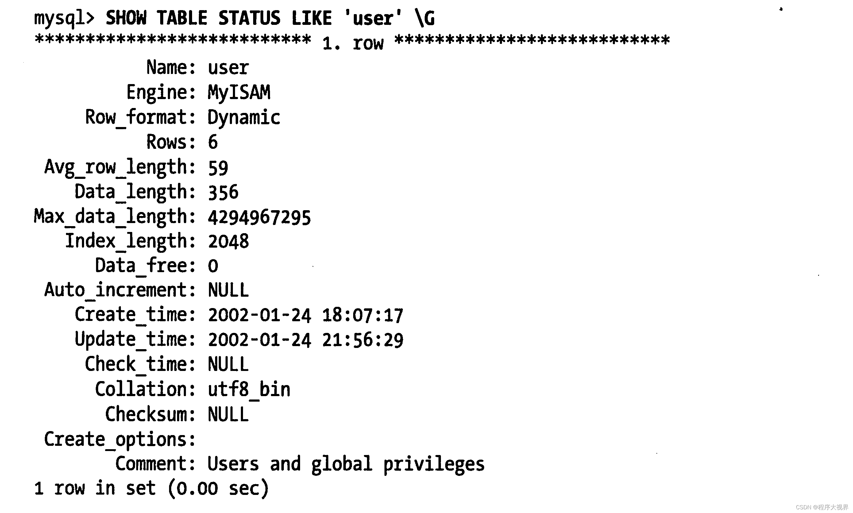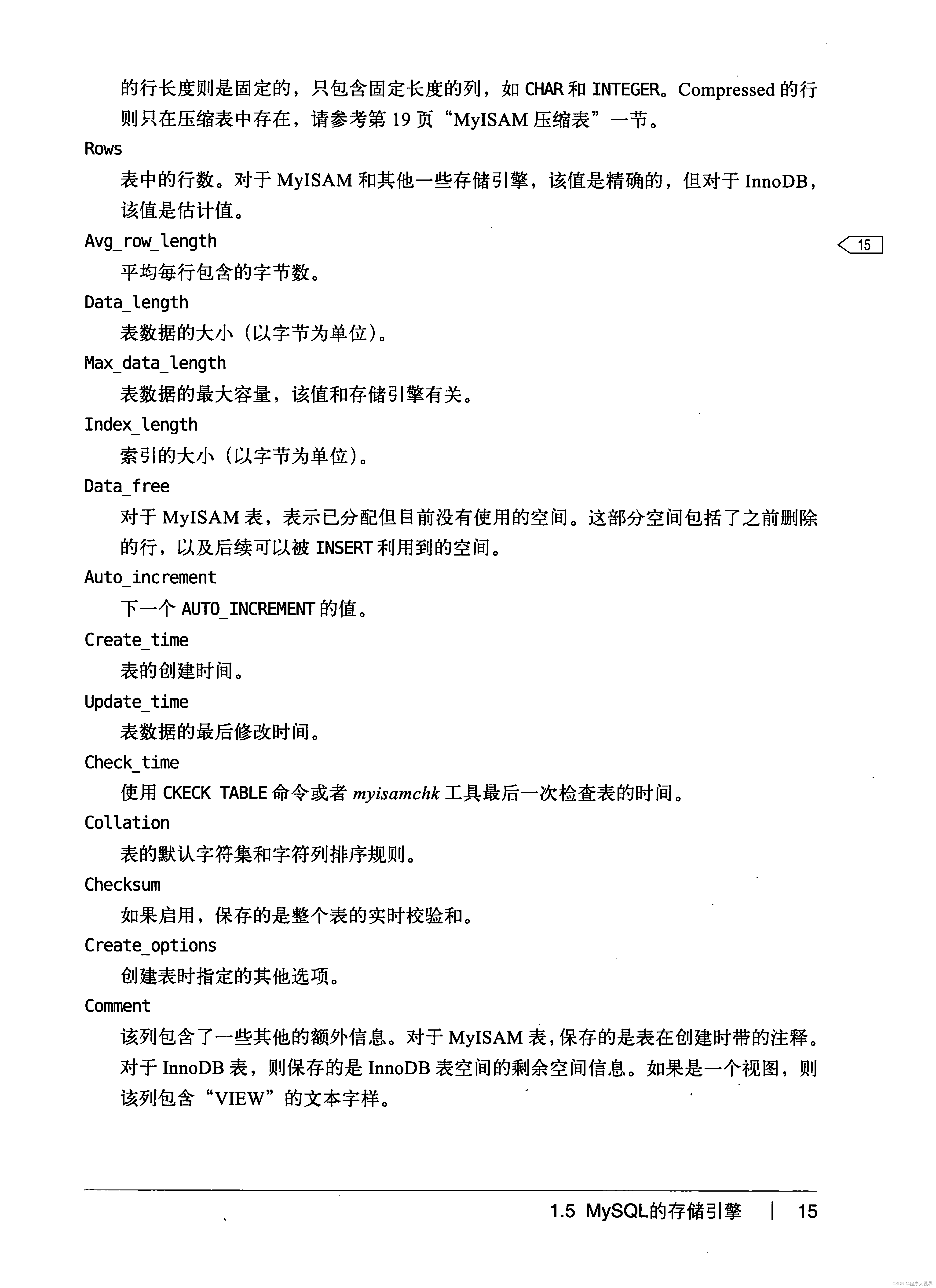 命令show table status可以查询数据库某个表的信息: