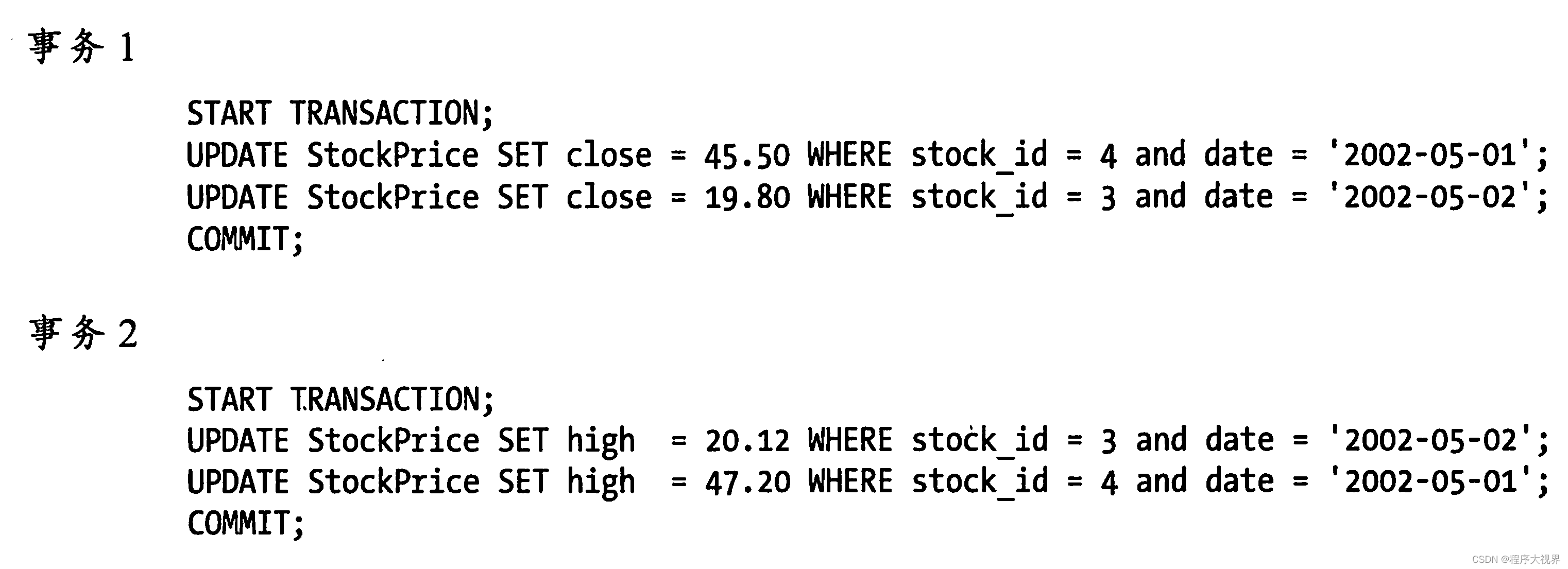 事务SQL样本如下: