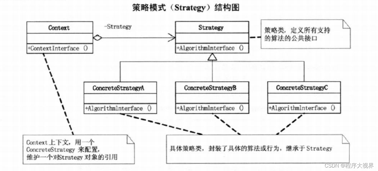 上图是Strategy 模式的结构图,让我们可以进行更方便的描述: