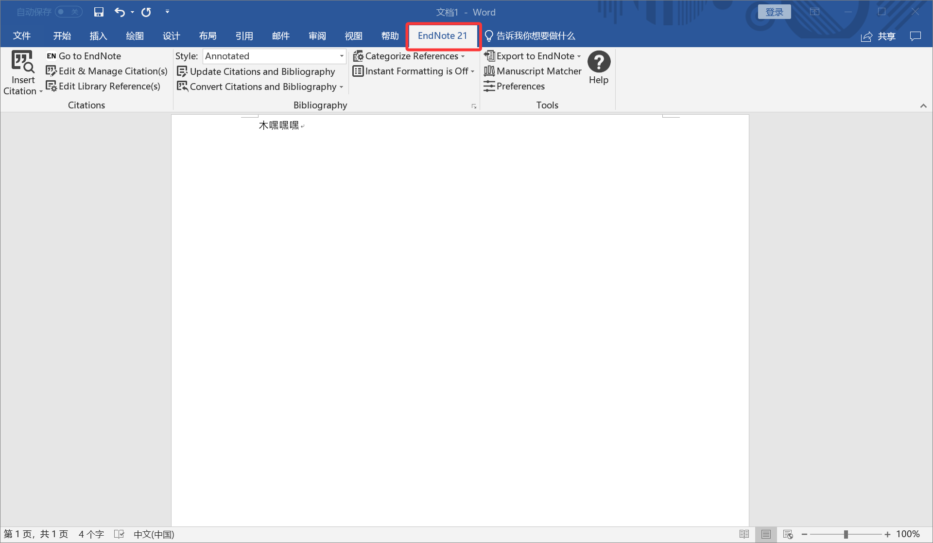 在下载安装Endnote之后,在Word里面就会多了个Endnote的按钮: