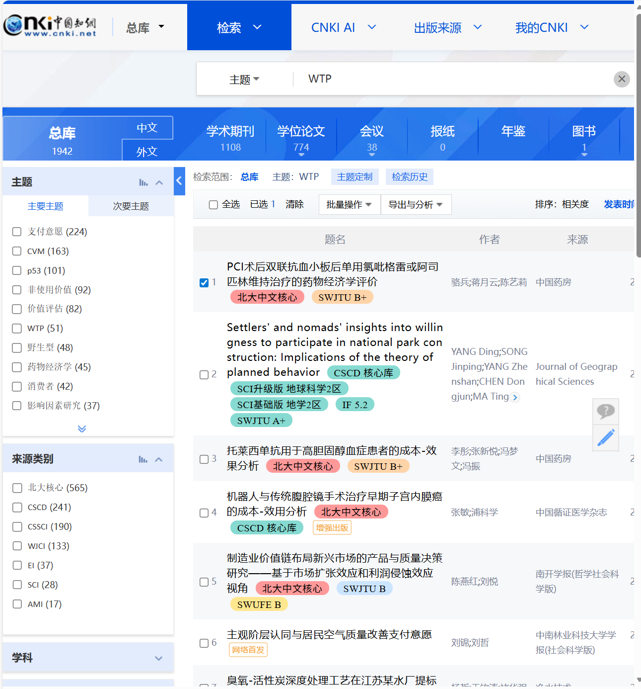 把想要导入的文献都打勾,然后可以看到上面一排有个导出与分析的选项