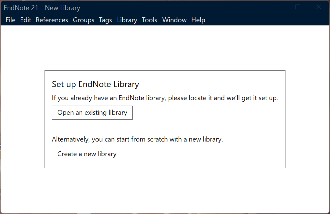 之后打开Endnote就会自动打开最后一次使用的文献库了,这时候也可以通过左上角的按钮File-New Reference Library来创建