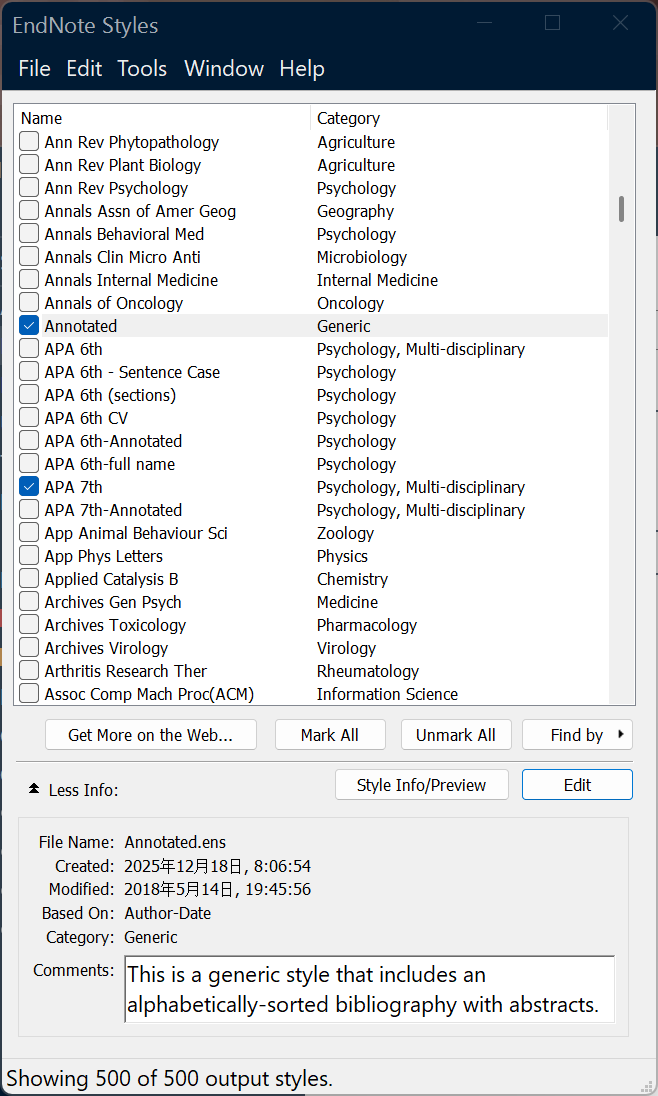 可以看到有一堆导出文献的格式,可以直接在里面找你想要使用的导出文献格式,一般都会有,如果没找到的话估计得去Endnote官网去下载,但是这个操作我还没有尝试过,所以就不在这里说了