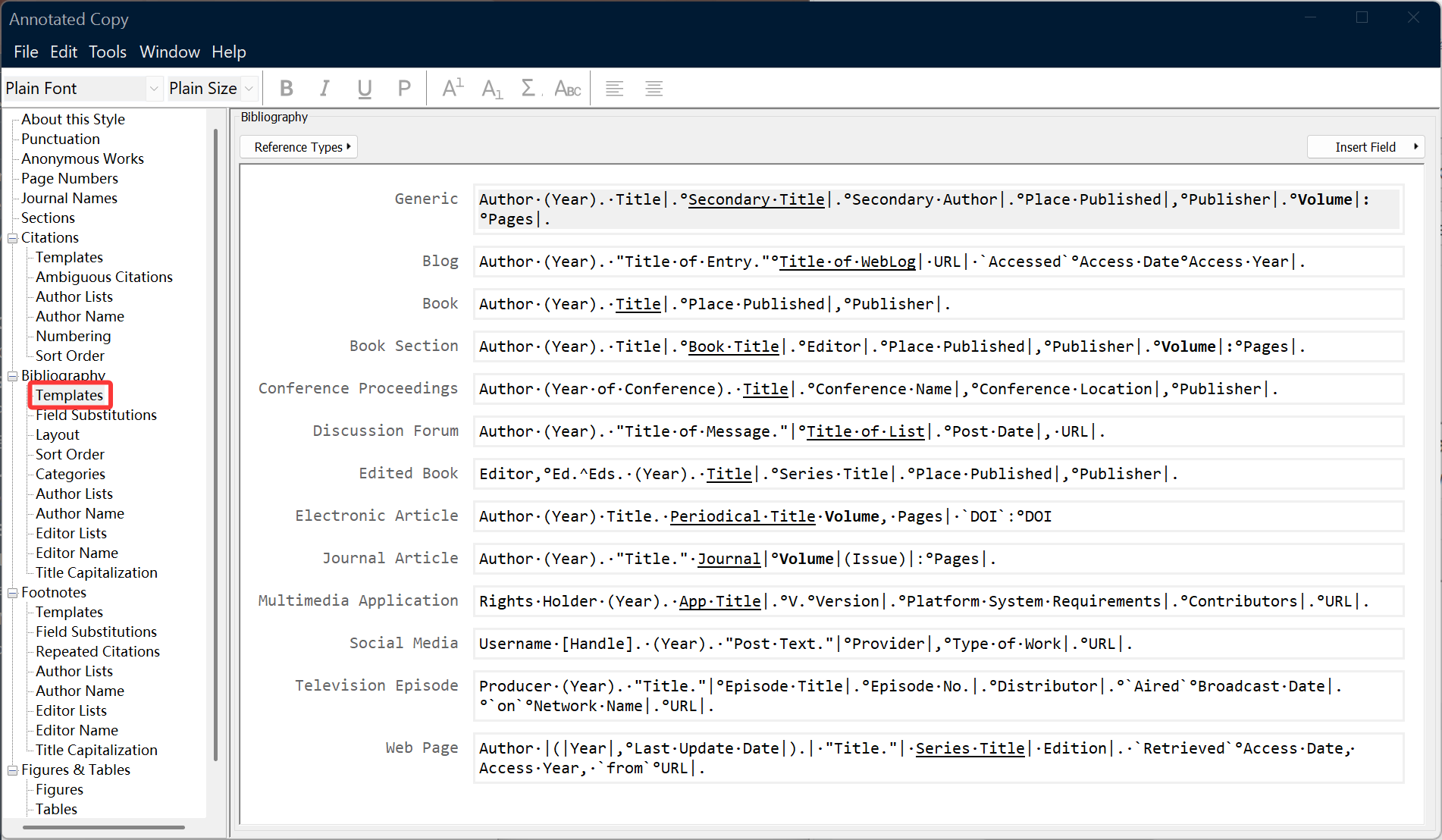 格式中的空格,逗号什么的符号用自己的键盘打出来就行了,当用到文献的年份,作者之类的时候得用右上角的Insert Field按钮来插入