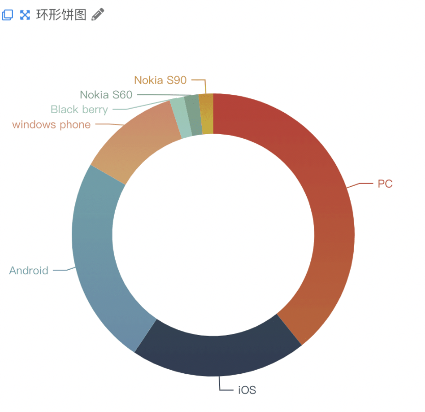 饼图可以用来展示各类别占⽐,适⽤于展现数据分布情况;轮播饼图是饼图的⼀种,⽀持以轮播的⽅式展示各类别的占⽐或数值;环形图是挖空的饼图,中间区域可以展现数据或者⽂本信息;玫瑰饼图通过扇形的半径长短来展示数据大小,适用于对比不同类别的数值大小。