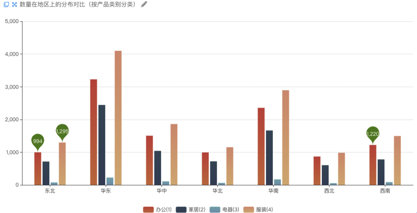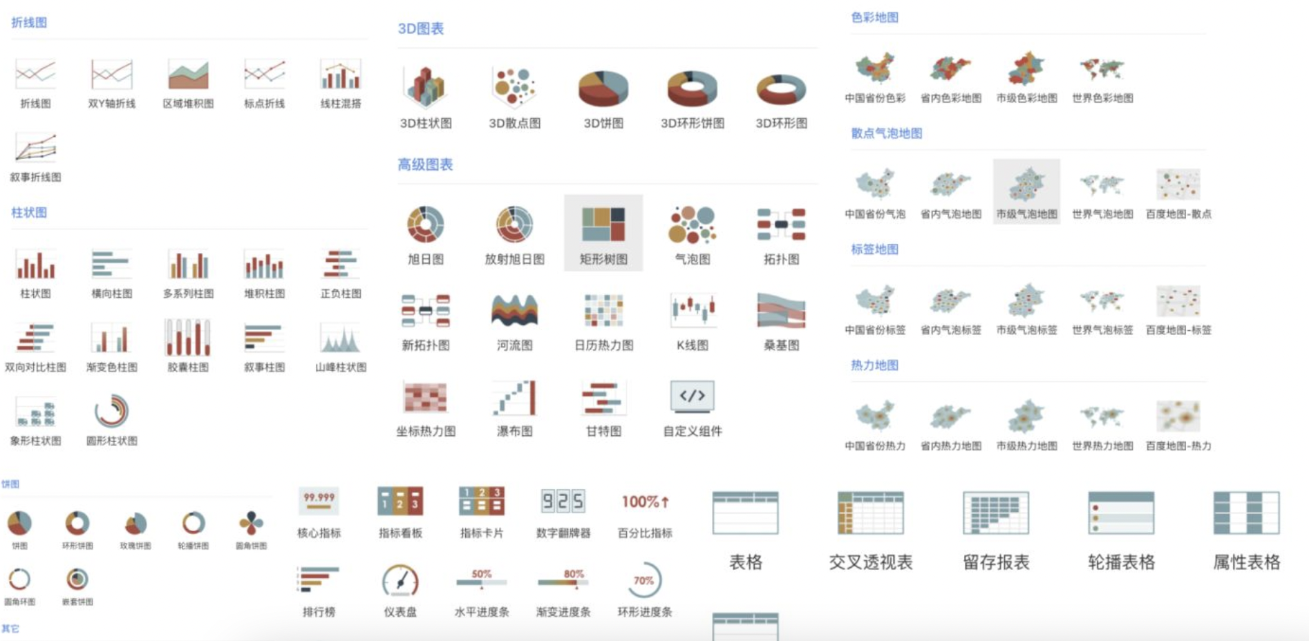 下面,我将以Sugar BI为例,为大家讲解在日常的数据可视化中,我们大概都会用到哪些图表组件