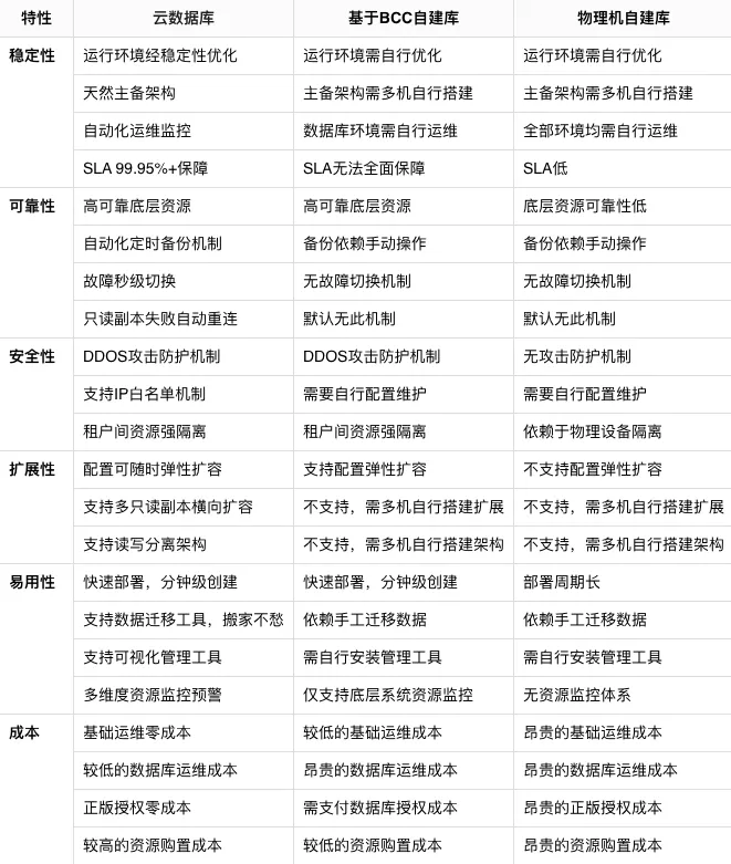 总体来说,部署在云端的服务(云服务器和云数据库)具有按需弹性扩展、轻松实现异地灾备、可远程管理及维护、TCO更低等优势。而本地物理机自建数据库虽然成本较高,但可以更好地满足业务定制化的需求。因此,在选择部署方式时,需要根据业务需求和实际情况进行综合考虑。