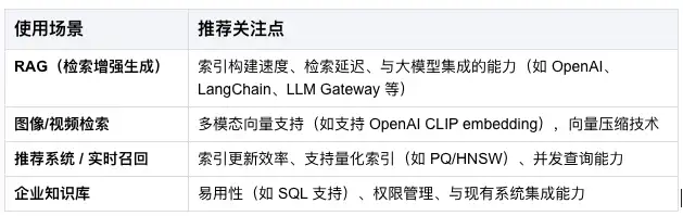 选择一个适合自己的向量数据库(Vector Database),可以从应用场景、数据规模、性能需求、生态支持、易用性、部署方式等维度综合考虑。