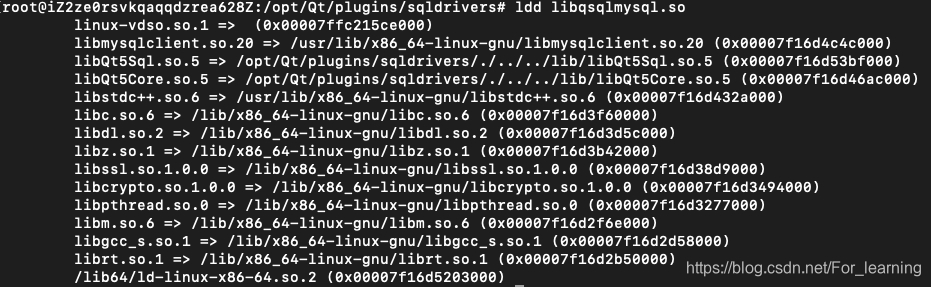 正常情况下的ldd libqsqlmysql.so的执行情况如下:
