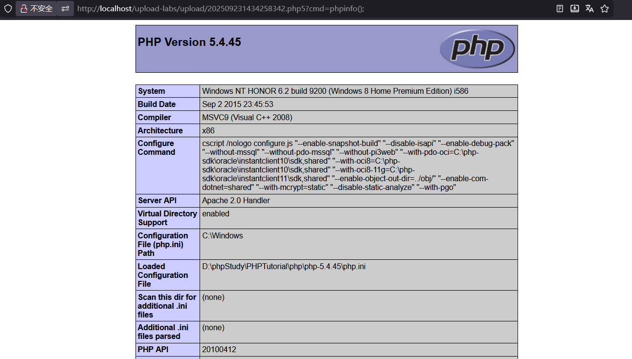 上传以.php5为后缀的文件,提示我们上传成功