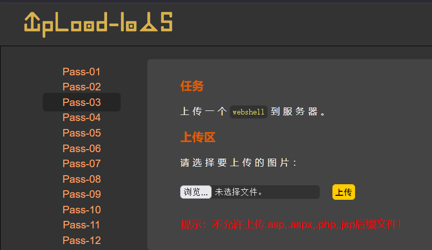 这里很明显是黑名单过滤文件后缀,过滤了.php,我们可以上传除这四类文件后缀的其他文件,这里可以考虑.php3,.php5,.phtml