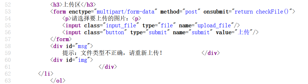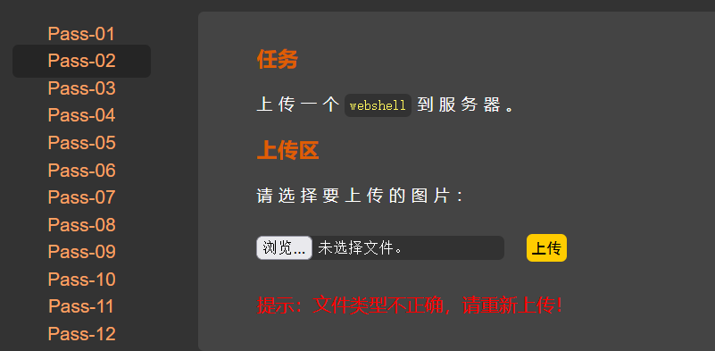 我们先上传一个php程序试试,提示我们文件类型不正确,可以ctrl+u查看一下源码