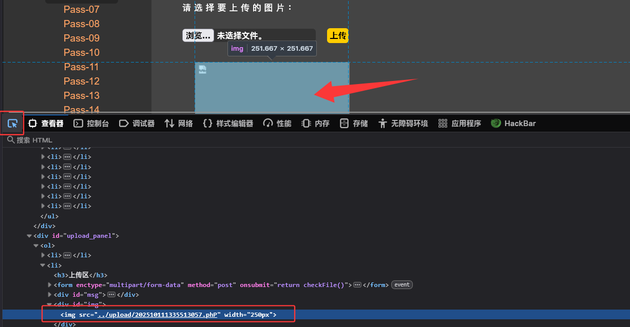 补充内容:这里是因为服务端会把我们上传的文件回显出来,浏览器会请求这个文件,从而把文件名暴露在浏览器里,但是这里要是服务端不会显我们的文件,我们无法通过浏览器得到文件名的时候该怎么办呢。