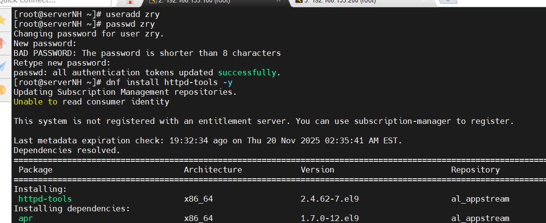 #新增一个用户,修改用户密码,然后安装httpd-tools