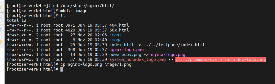 #进入server默认发布目录/usr/share/nginx/html,创建image目录,复制一张图片到image/1.png
