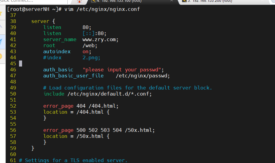 #绑定用户和网站,密码放在/etc/nginx/passwd;然后修改nginx主配置,添加auth_basic,auth_basic_user_file——管理网站和密码文件