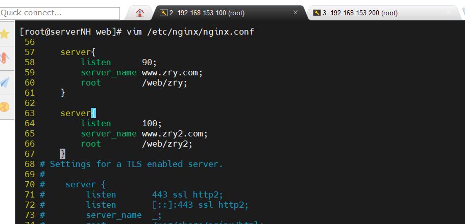 #进入浏览器访问http://www.zry.com:90,http://www.zry2.com:100