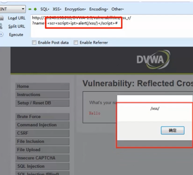 红色字体表明服务端过滤了script标签,过滤一个的话,我们尝试再插入一个script标签,成功弹窗