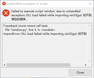 Failed to execute script 'window' due to unhandled exception: DLL load failed while importing win32gui: 找不到指定的程序。