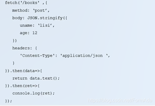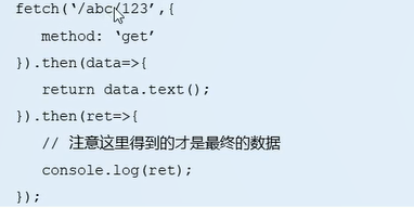 text()方法属于fetchAPI的一部分,它返回一个promise实例对象,用于获取后台返回的数据,还有一个方法,json()是以对象形式获取返回的数据。