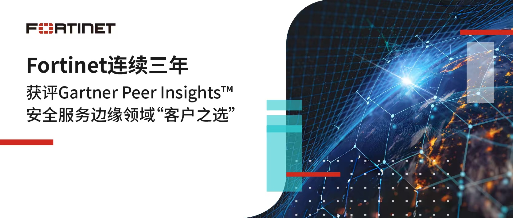 近日,Fortinet宣布,已经连续第三年获评Gartner Peer Insights™安全服务边缘(Security Service Edge,SSE)领域“客户之选”,同时也是唯一一家获此殊荣的网络安全供应商。